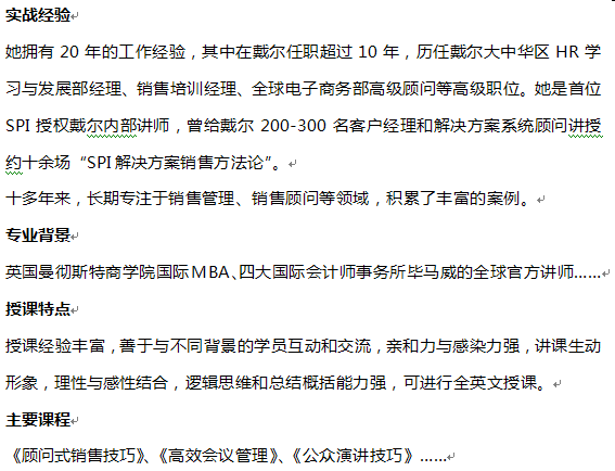 主 讲:原戴尔大中华区销售培训经理 阮娅莉