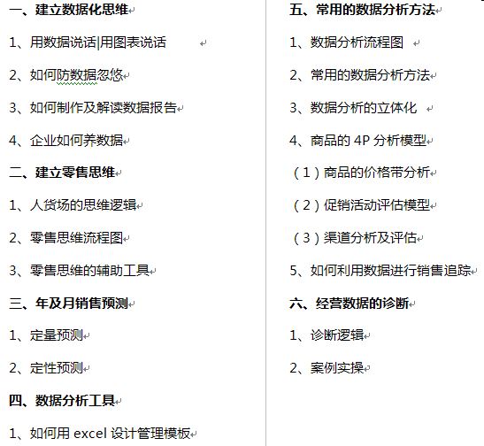 课程对象:销售部经理、大区经理、区域经理、城市经理、商品经理、数据分析员